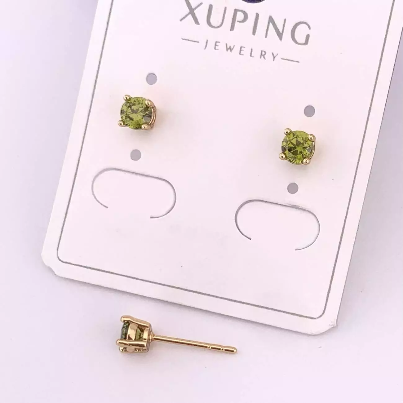 Сережки Xuping цвяшки (пусети) 4 мм з салатовим каменем з медичного золота позолота 18К