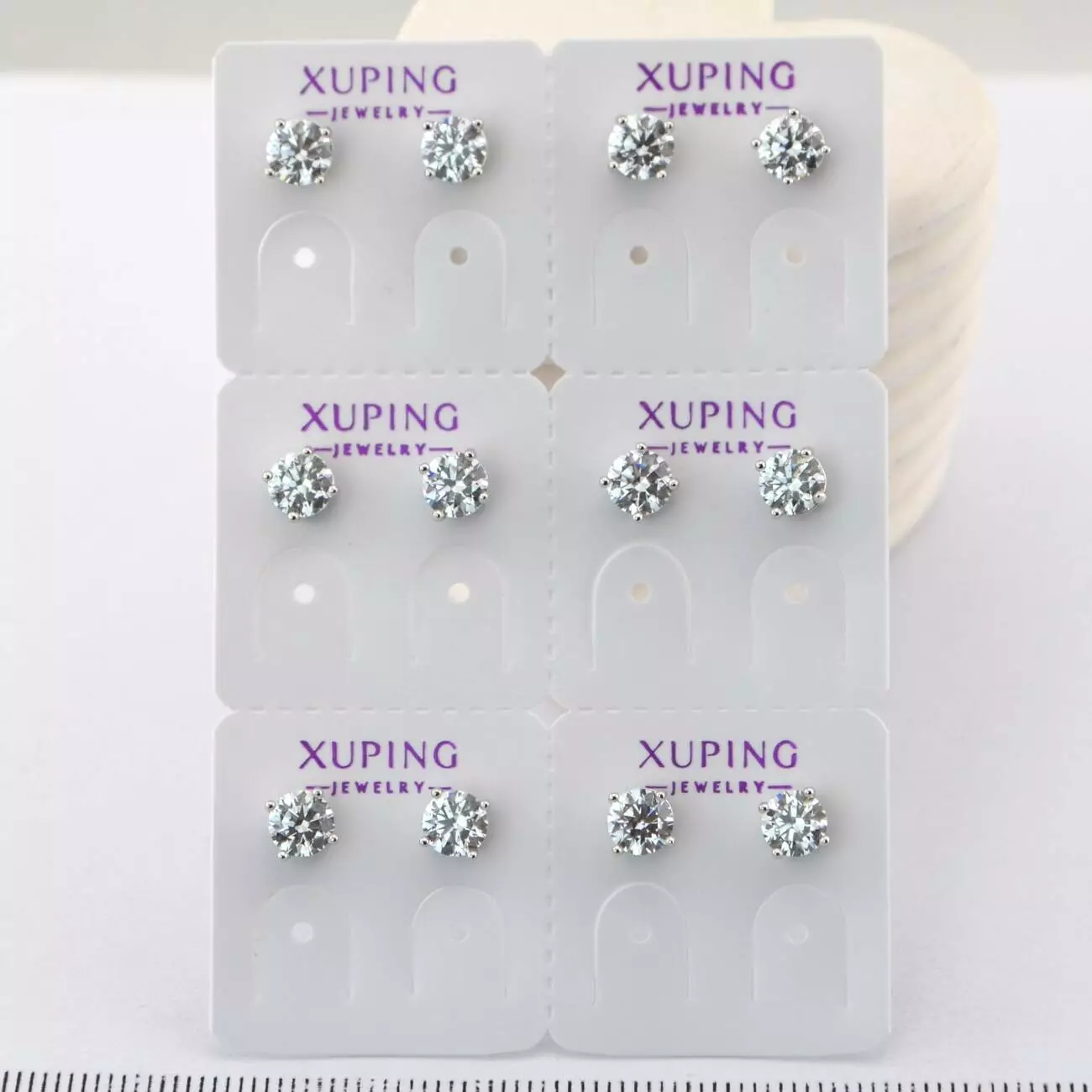 Сережки Xuping цвяшки (пусети) 5 мм (6 пар) з білим каменем з медичного золота родій (01920)