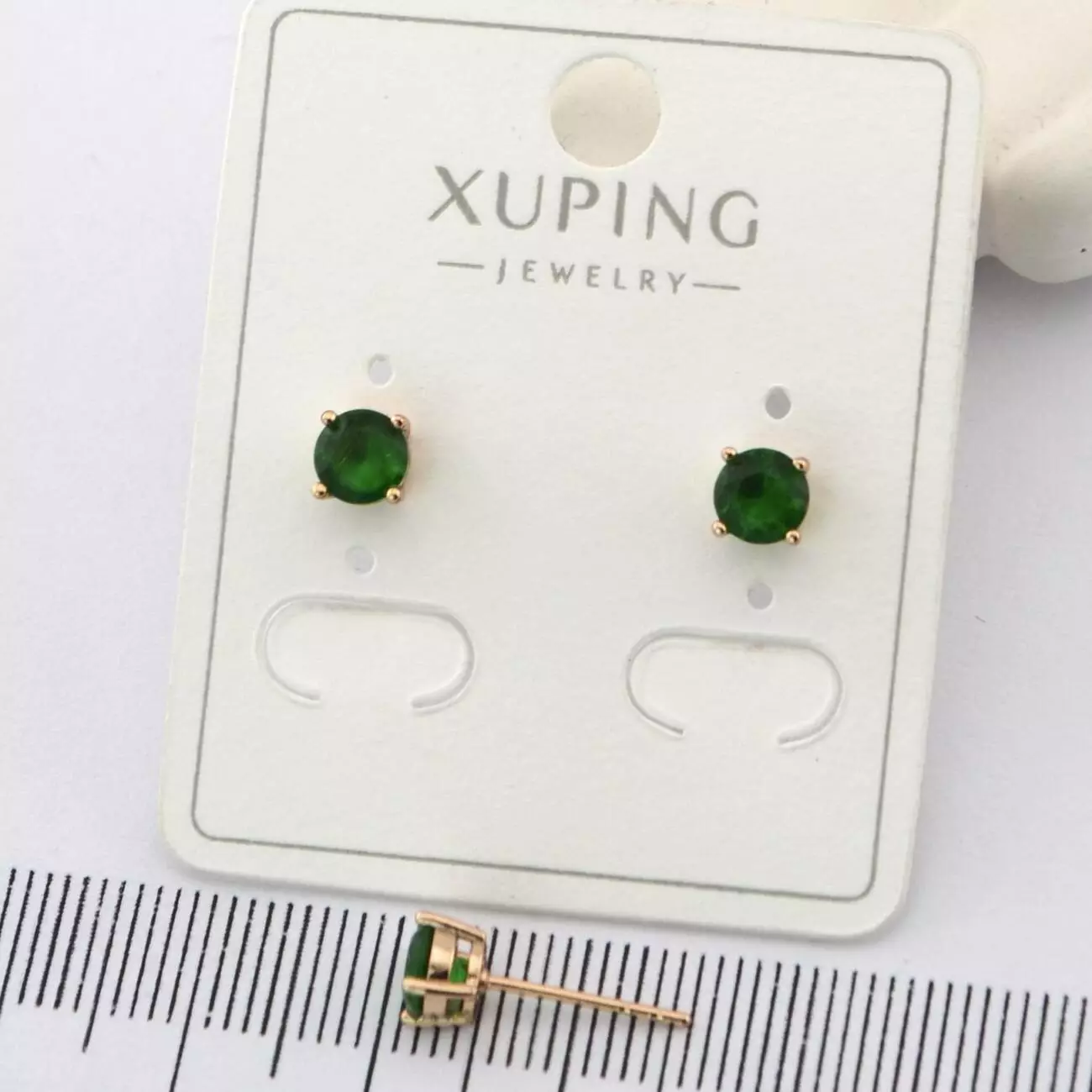 Сережки Xuping цвяшки (пусети) 5 мм с зеленим каменем з медичного золота позолота 18К