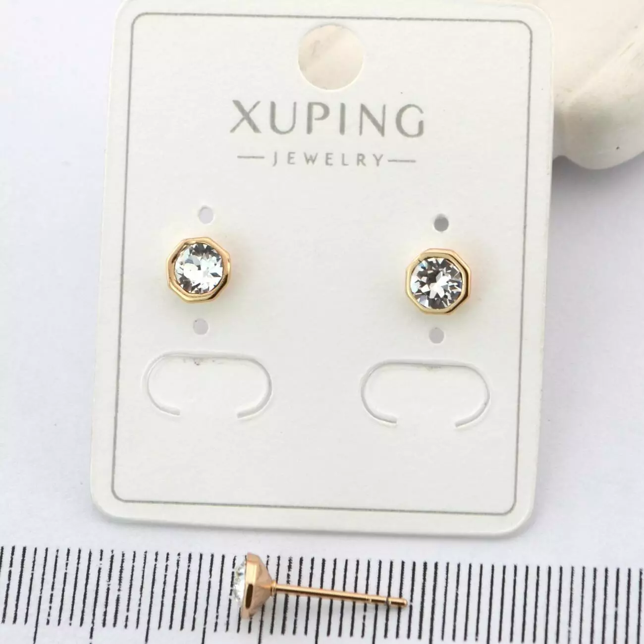 Сережки Xuping цвяшки (пусети) 6 мм. з білим каменем з медичного золота позолота 18К (01942)