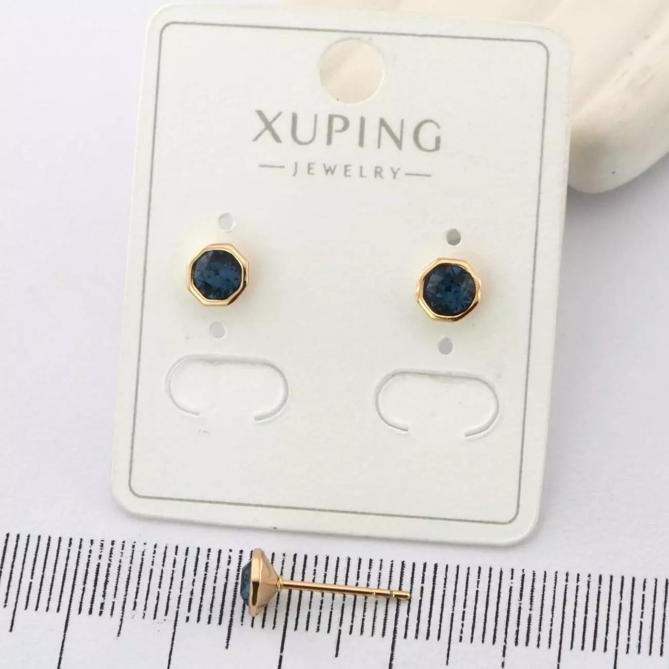 Сережки Xuping цвяшки (пусети) 6 мм. з синім каменем з медичного золота позолота 18К (01880)