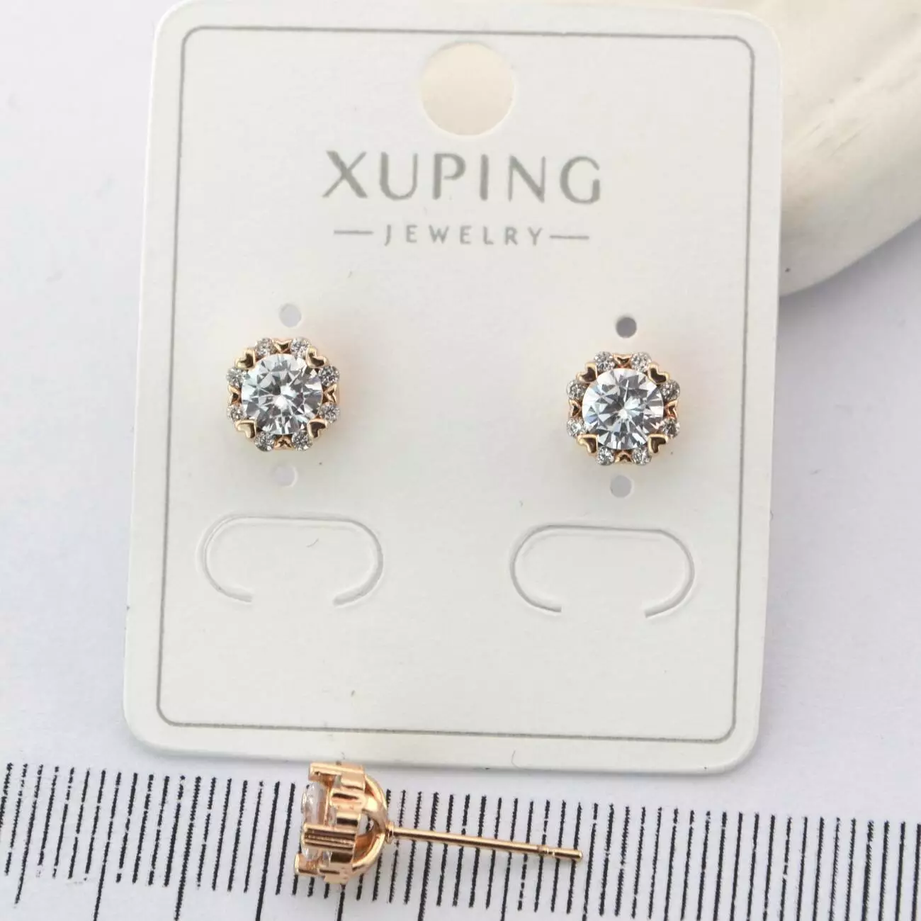 Сережки Xuping цвяшки (пусети) 7 мм з білим каменем з медичного золота позолота 18К (01765)