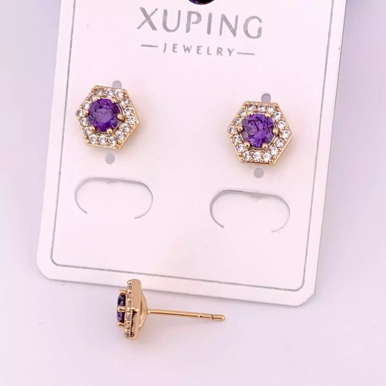 Сережки Xuping цвяшки (пусети) 7 мм з фіолетовим каменем з медичного золота позолота 18К