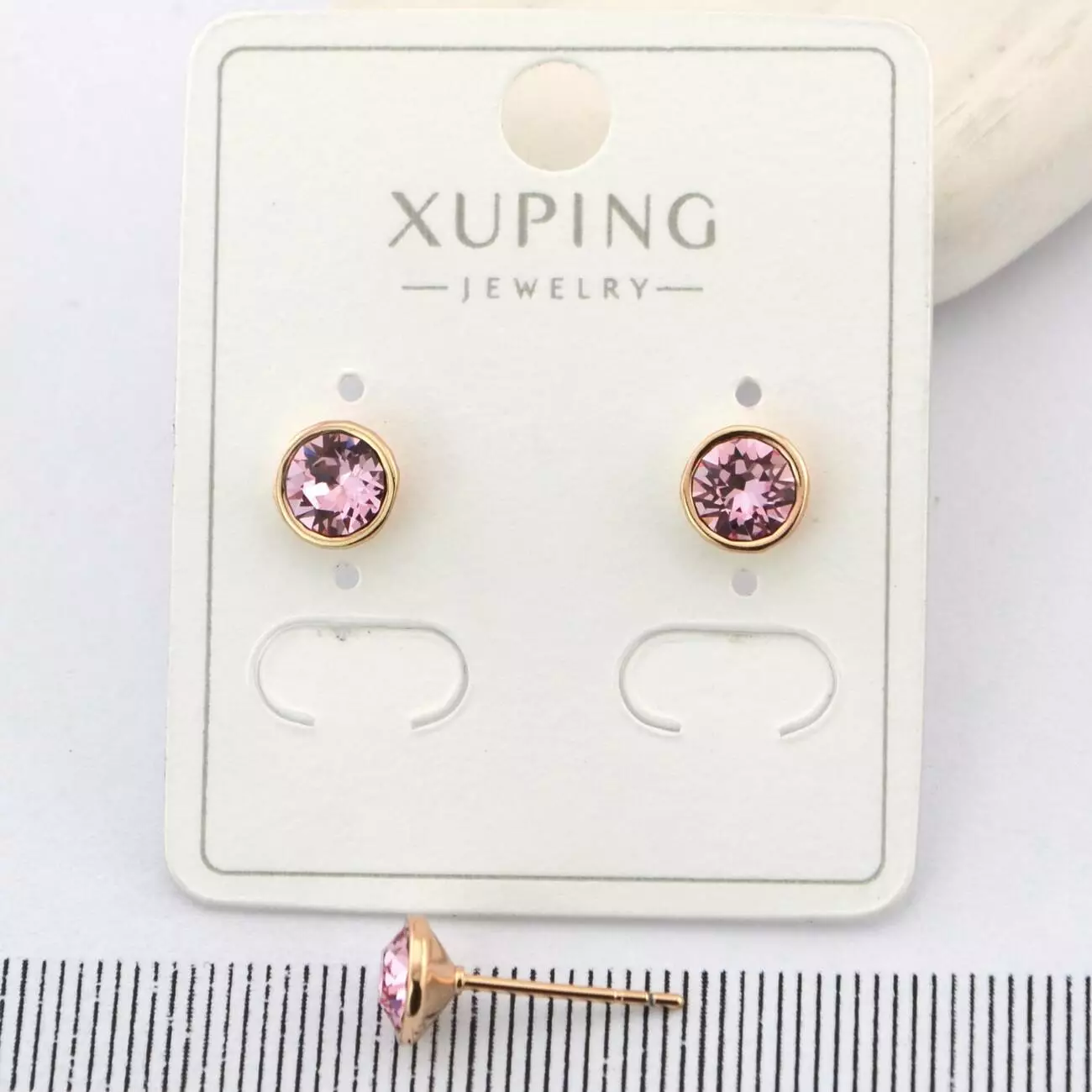 Сережки Xuping цвяшки (пусети) 7 мм. з рожевим каменем з медичного золота позолота 18К (01945)