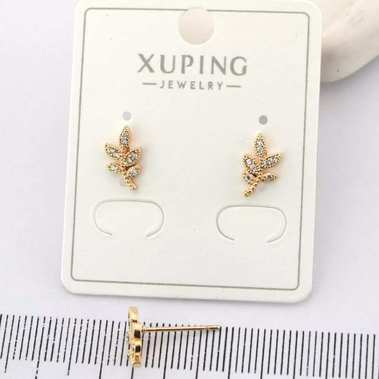 Сережки Xuping цвяшки (пусети) гілочки з медичного золота позолота 18К (01932)