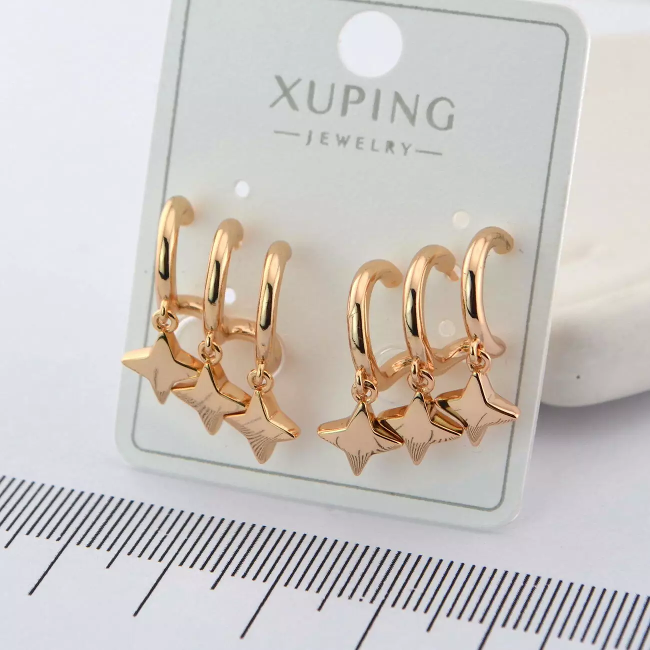 Сережки Xuping цвяшки (пусети) імітація трьох проколів з медичного золота позолота 18К