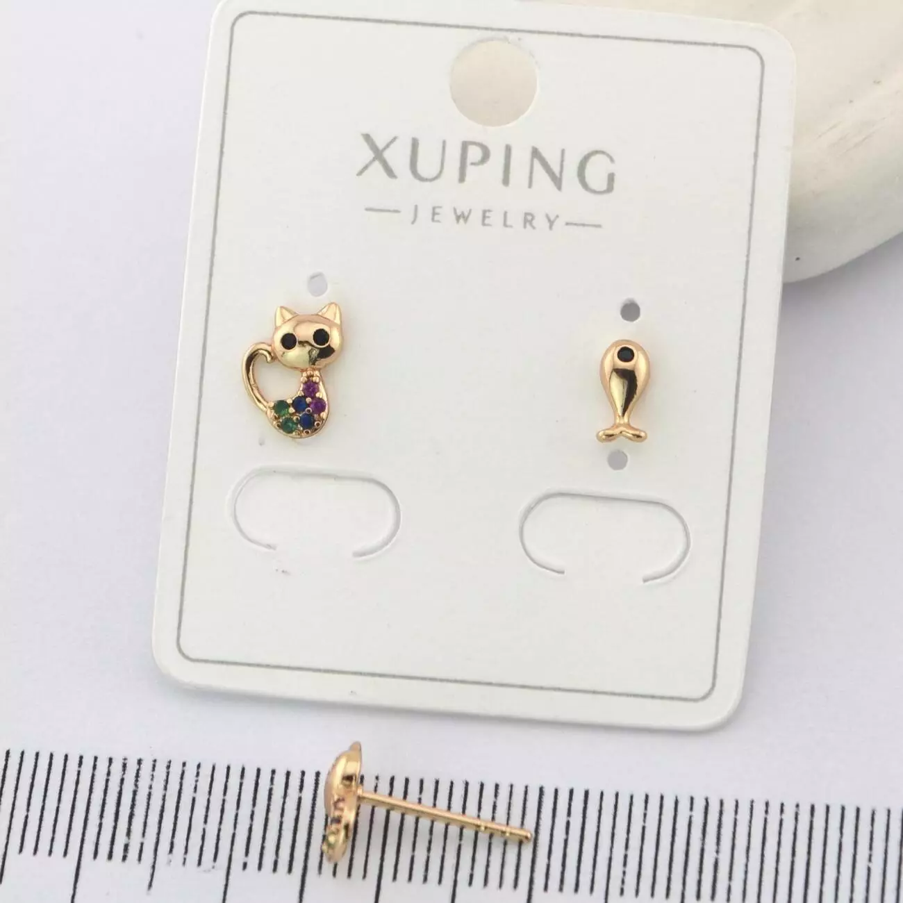 Сережки Xuping цвяшки (пусети) котик з рибкою з медичного золота позолота 18К (01708)