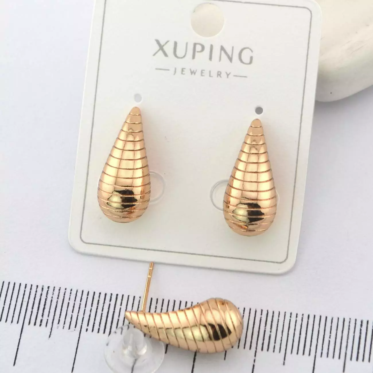 Сережки Xuping цвяшки (пусети) краплі з медичного золота позолота 18К (01729)