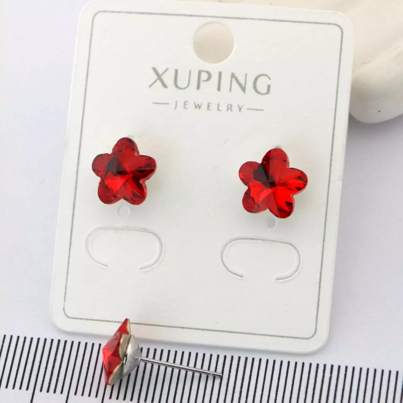 Сережки Xuping цвяшки (пусети) квітка с червоним каменем з медичного золота родій
