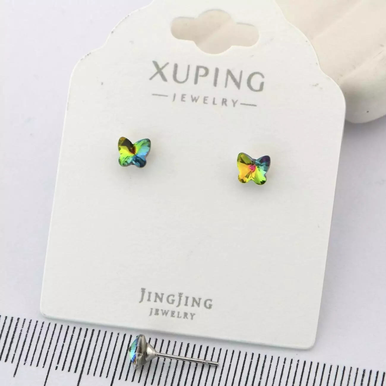 Сережки Xuping цвяшки (пусети) метелики с зеленим каменем з медичного золота родій