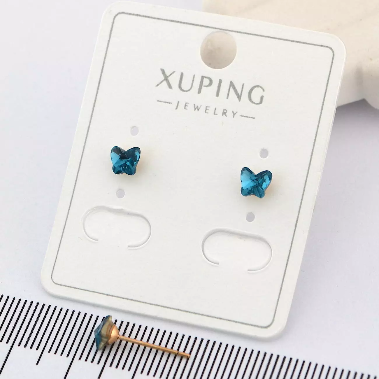 Сережки Xuping цвяшки (пусети) метелики з блакитним каменем з медичного золота позолота 18К