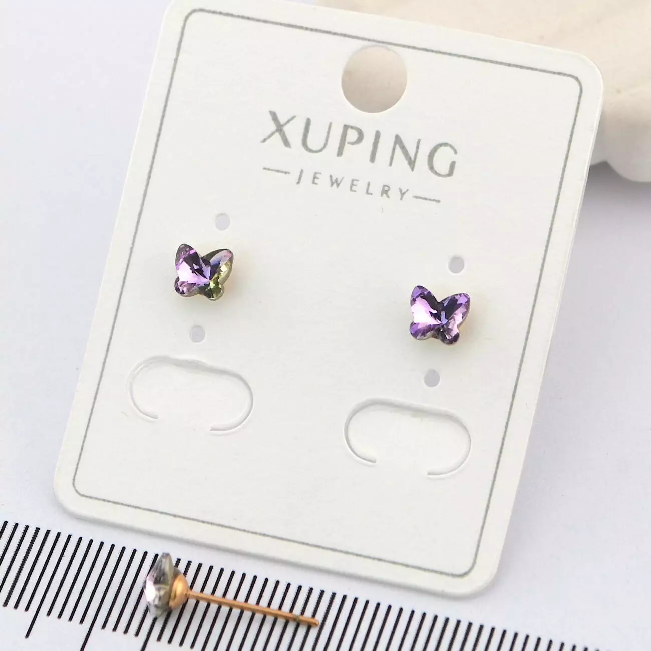 Сережки Xuping цвяшки (пусети) метелики з фіолетовим каменем з медичного золота позолота 18К