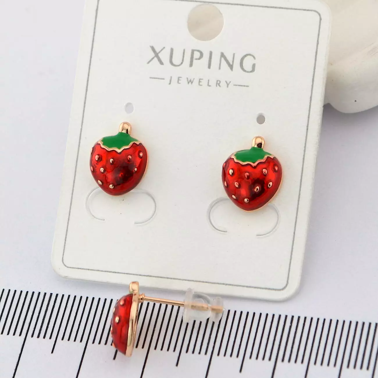 Сережки Xuping цвяшки (пусети) полунички з медичного золота позолота 18К