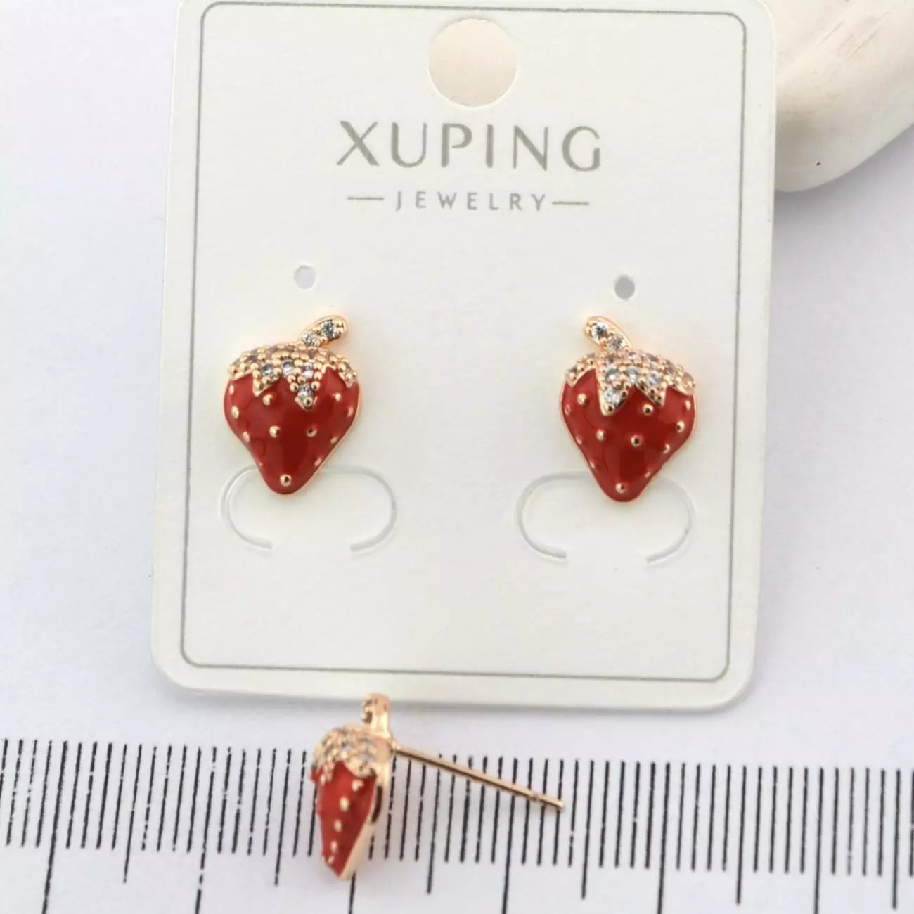 Сережки Xuping цвяшки (пусети) полунички з медичного золота позолота 18К (01929)
