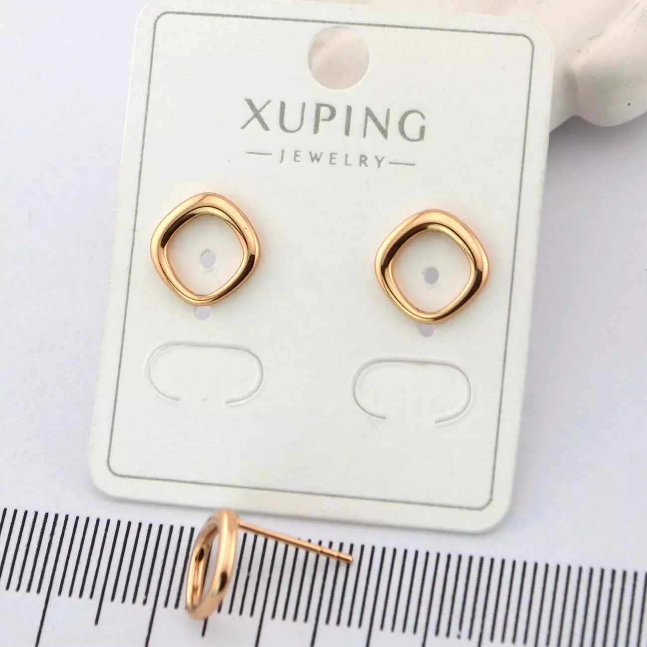 Сережки Xuping цвяшки (пусети) ромби 10 мм з медичного золота позолота 18К