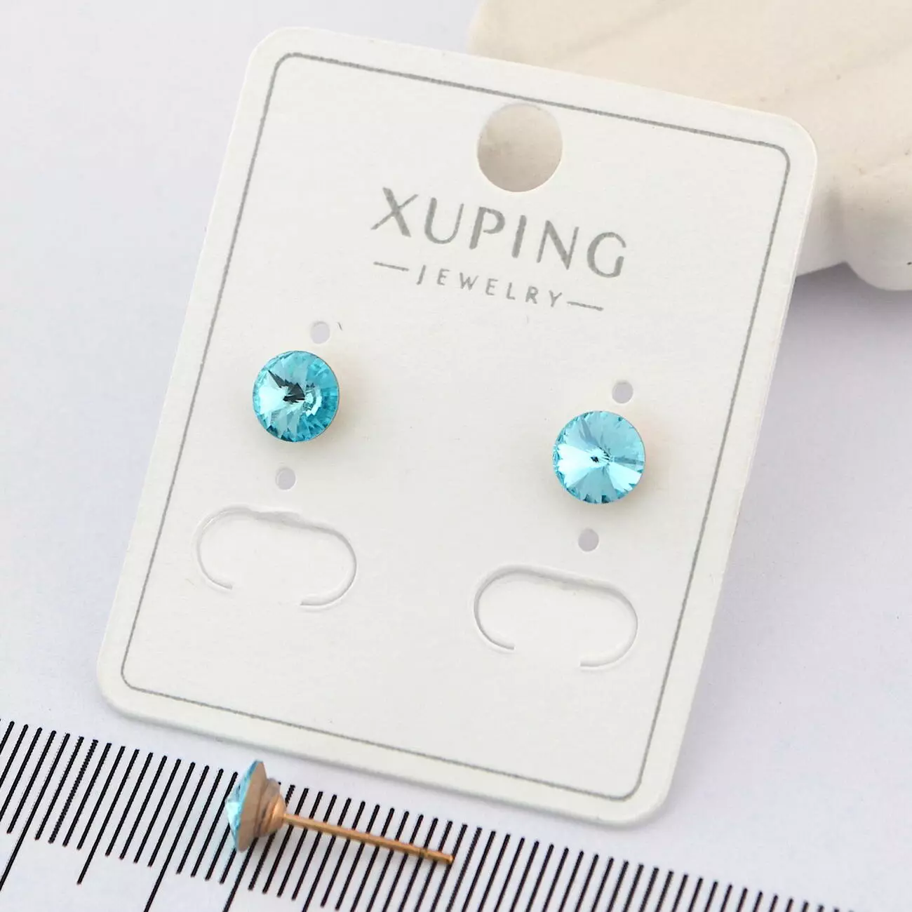 Сережки Xuping цвяшки (пусети) с блакитним каменем з медичного золота позолота 18К