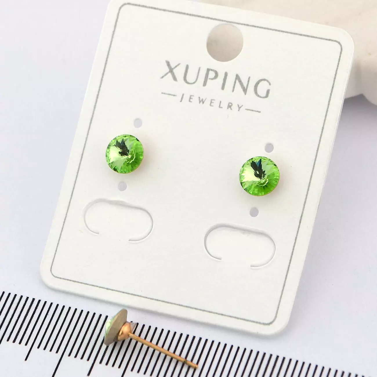 Сережки Xuping цвяшки (пусети) с салатовим каменем з медичного золота позолота 18К