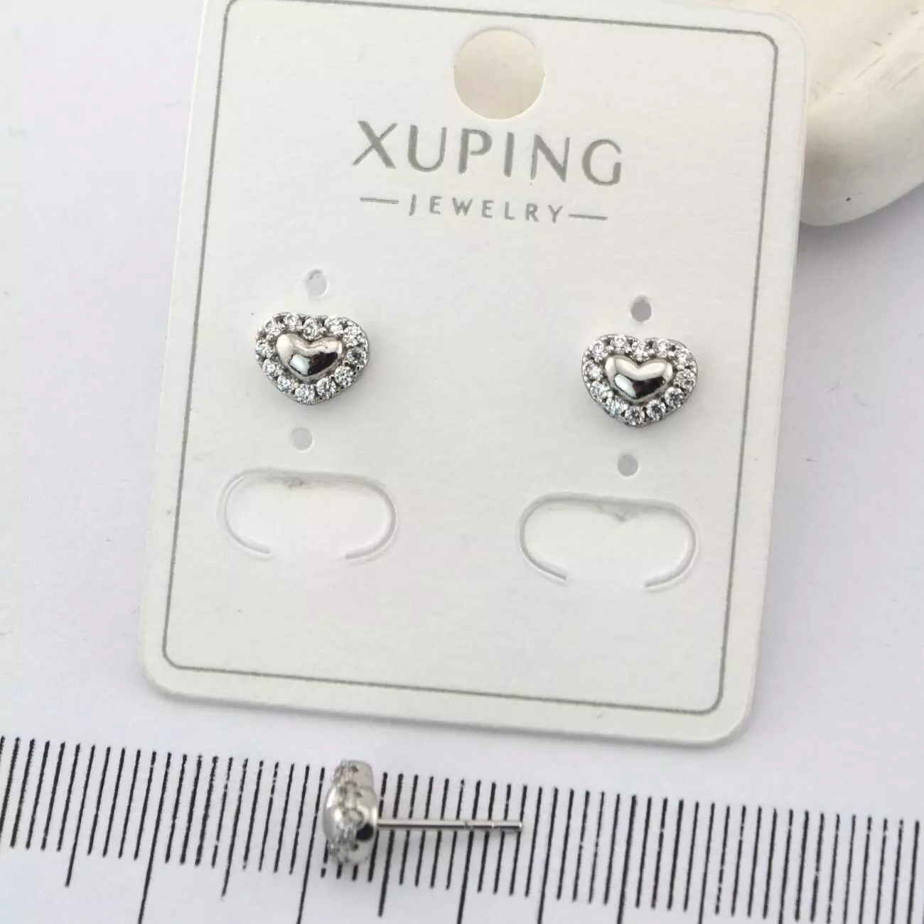 Сережки Xuping цвяшки (пусети) сердечки з білими каменями з медичного золота родій (01481)
