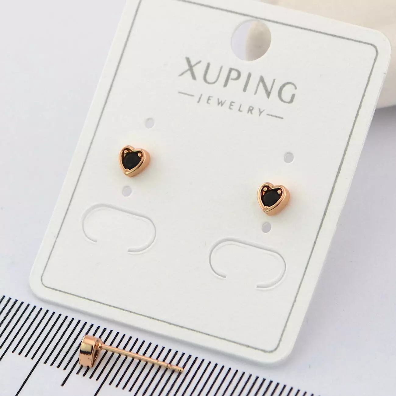Сережки Xuping цвяшки (пусети) сердечки з чорним каменем з медичного золота позолота 18К