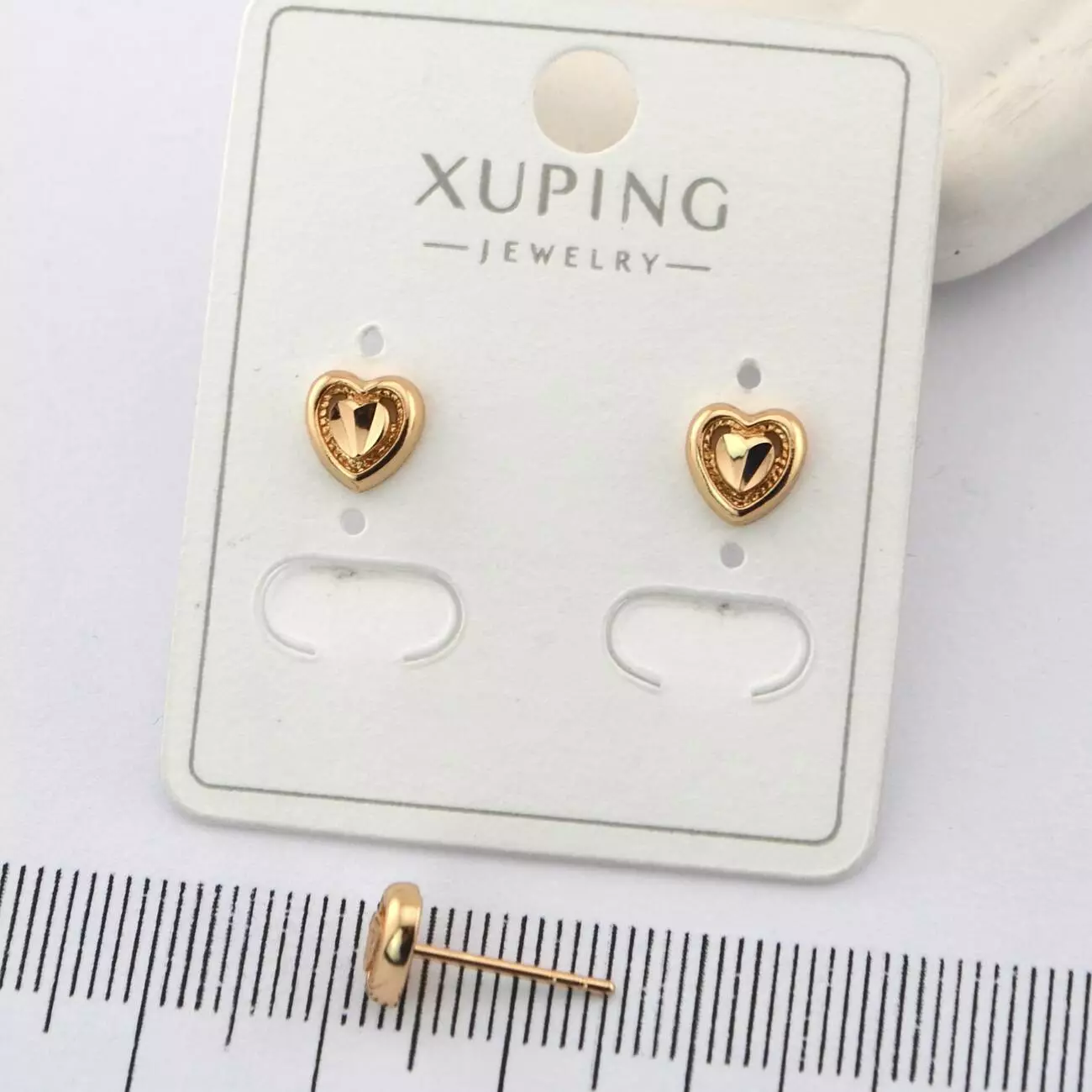 Сережки Xuping цвяшки (пусети) сердечки з медичного золота позолота 18К (01482)