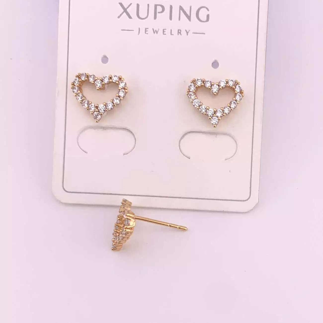 Сережки Xuping цвяшки (пусети) сердечки з медичного золота позолота 18К