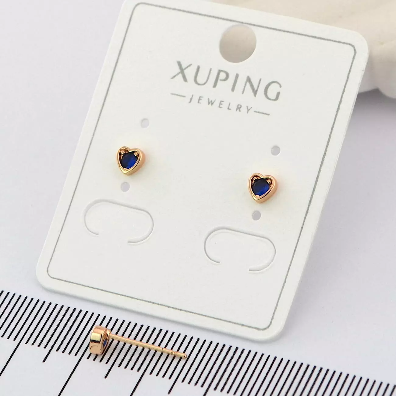 Сережки Xuping цвяшки (пусети) сердечки з синім каменем з медичного золота позолота 18К