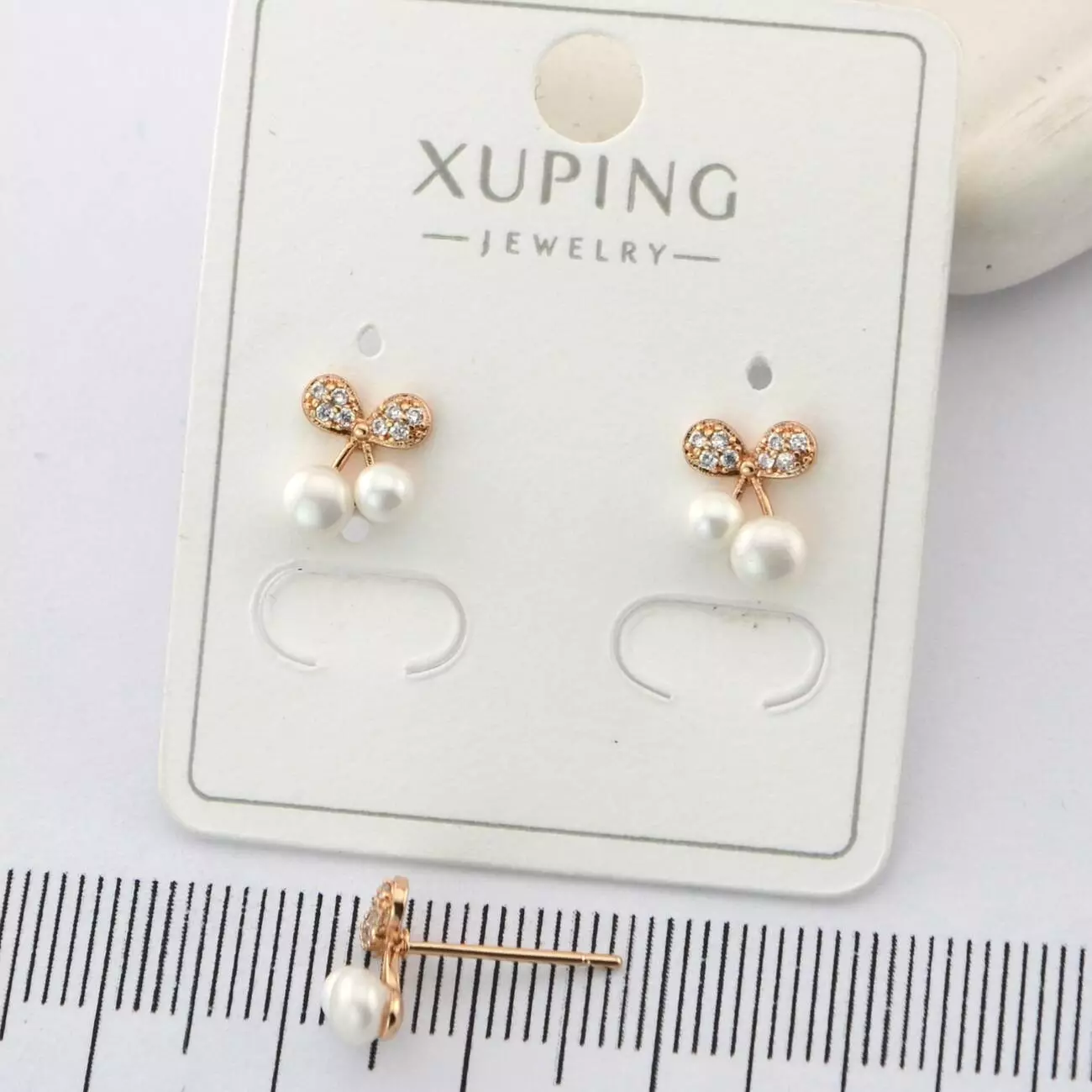 Сережки Xuping цвяшки (пусети) вишні з перлиною медичного золота позолота 18К