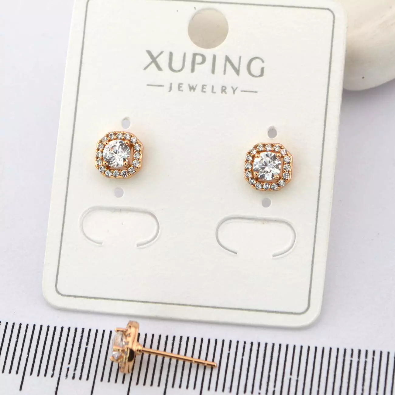 Сережки Xuping цвяшки (пусети) з білим каменем з медичного золота позолота 18К