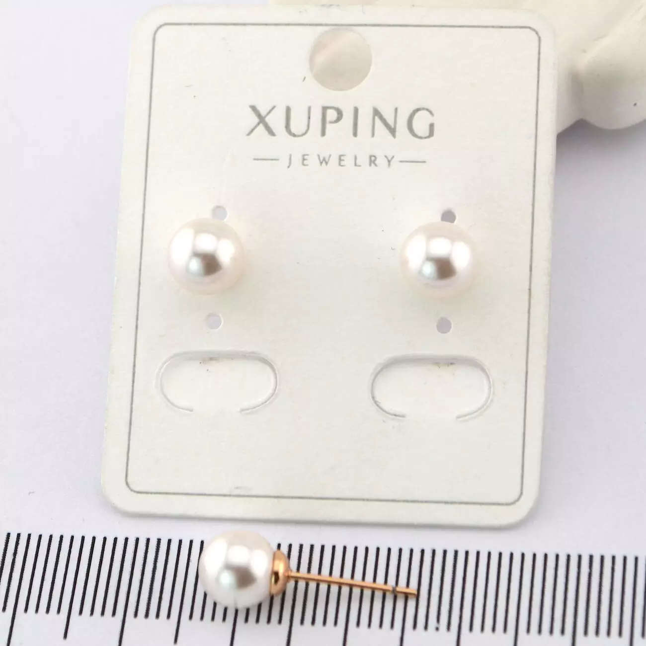Сережки Xuping цвяшки (пусети) з перлиною 7 мм з медичного золота позолота 18К
