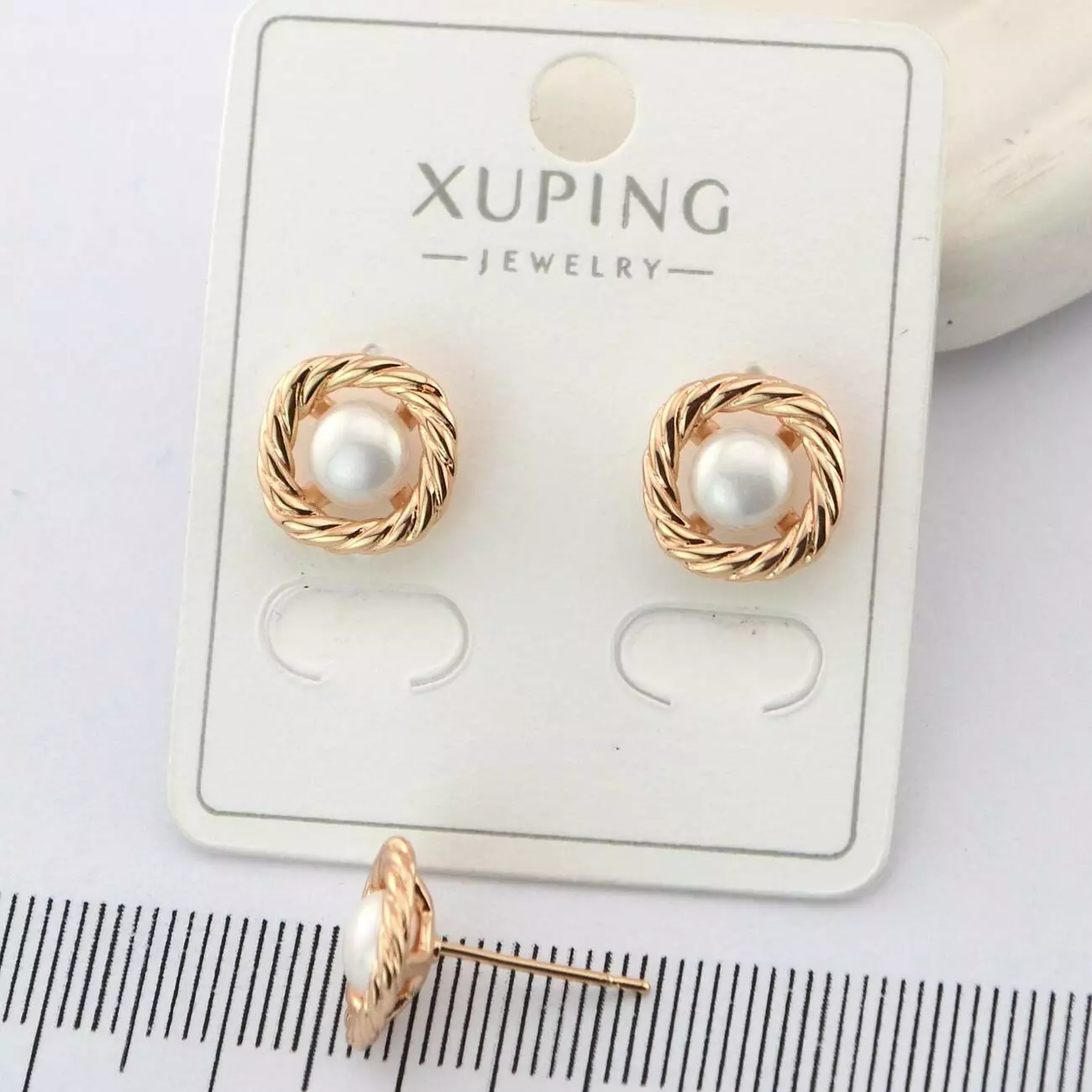 Сережки Xuping цвяшки (пусети) з перлиною медичного золота позолота 18К