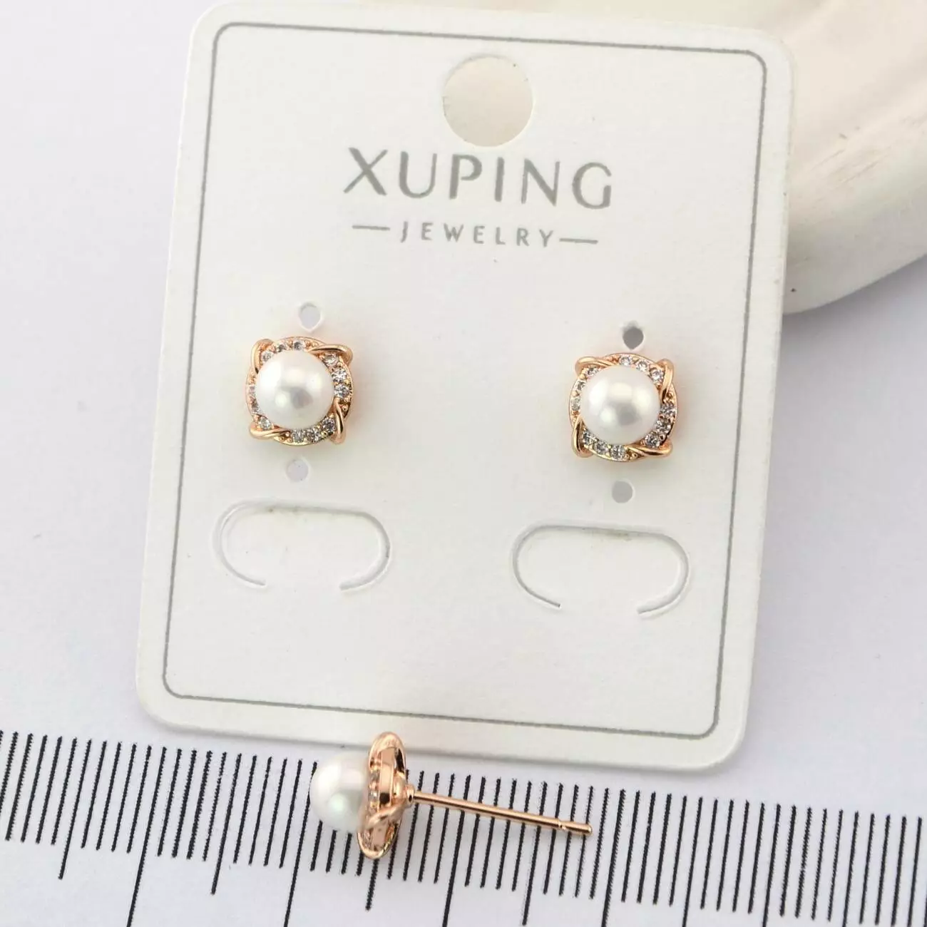 Сережки Xuping цвяшки (пусети) з перлиною з медичного золота позолота 18К