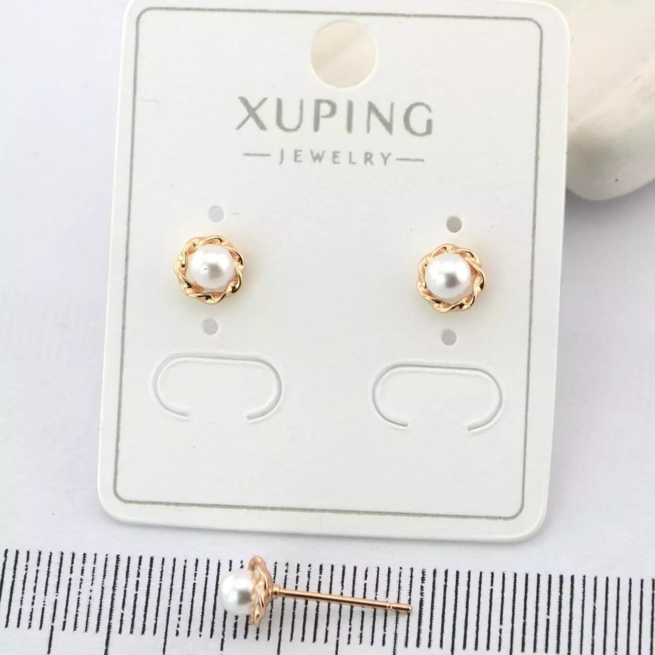 Сережки Xuping цвяшки (пусети) з перлиною з медичного золота позолота 18К (02010)