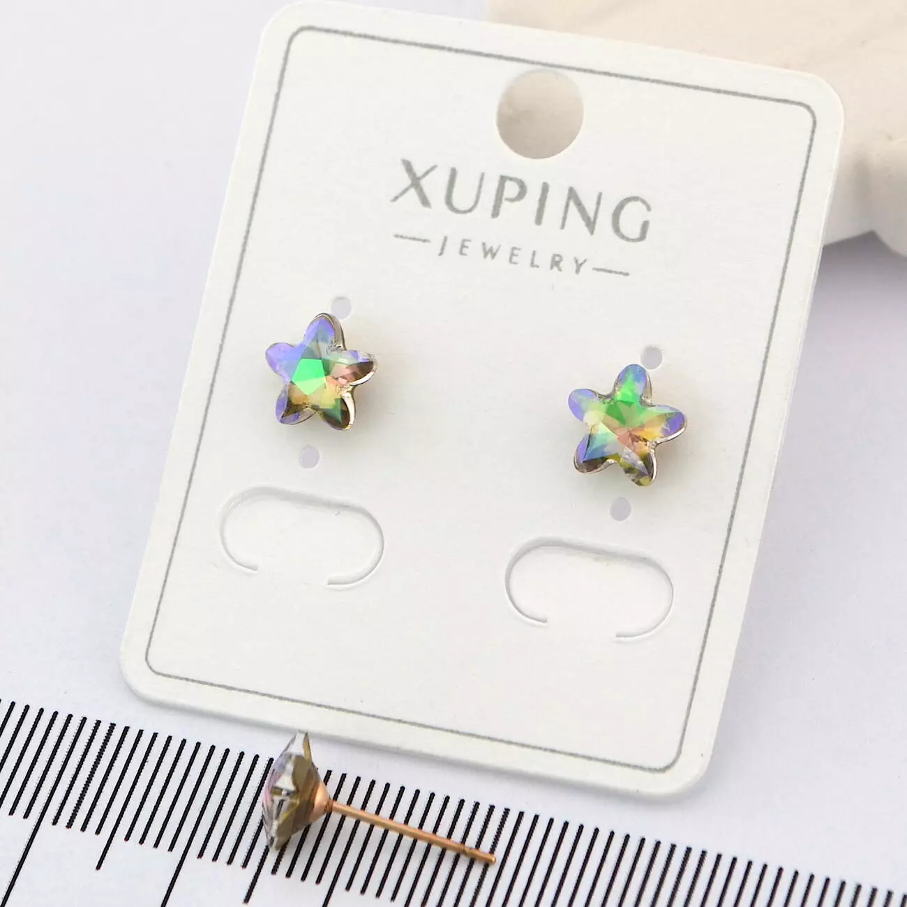 Сережки Xuping цвяшки (пусети) зірки с зеленим каменем з медичного золота позолота 18К