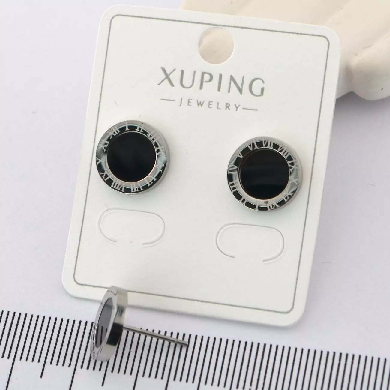 Сережки Xuping TTM цвяшки (пусети) чорний центр з медичного золота родій