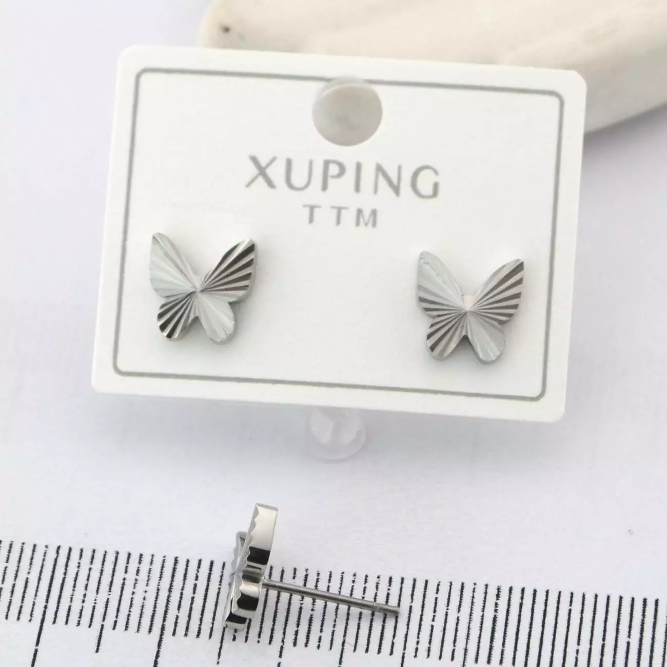 Сережки Xuping TTM цвяшки (пусети) метелик з медичного золота родій (02020)