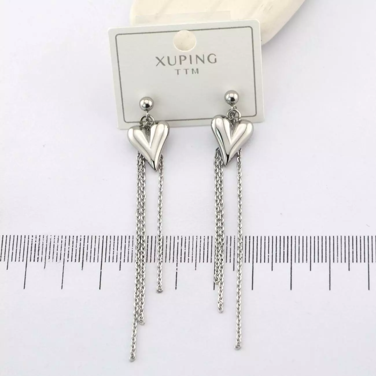 Сережки Xuping TTM цвяшки (пусети) сердечки з ланцюжками з медичного золота родій (01955)