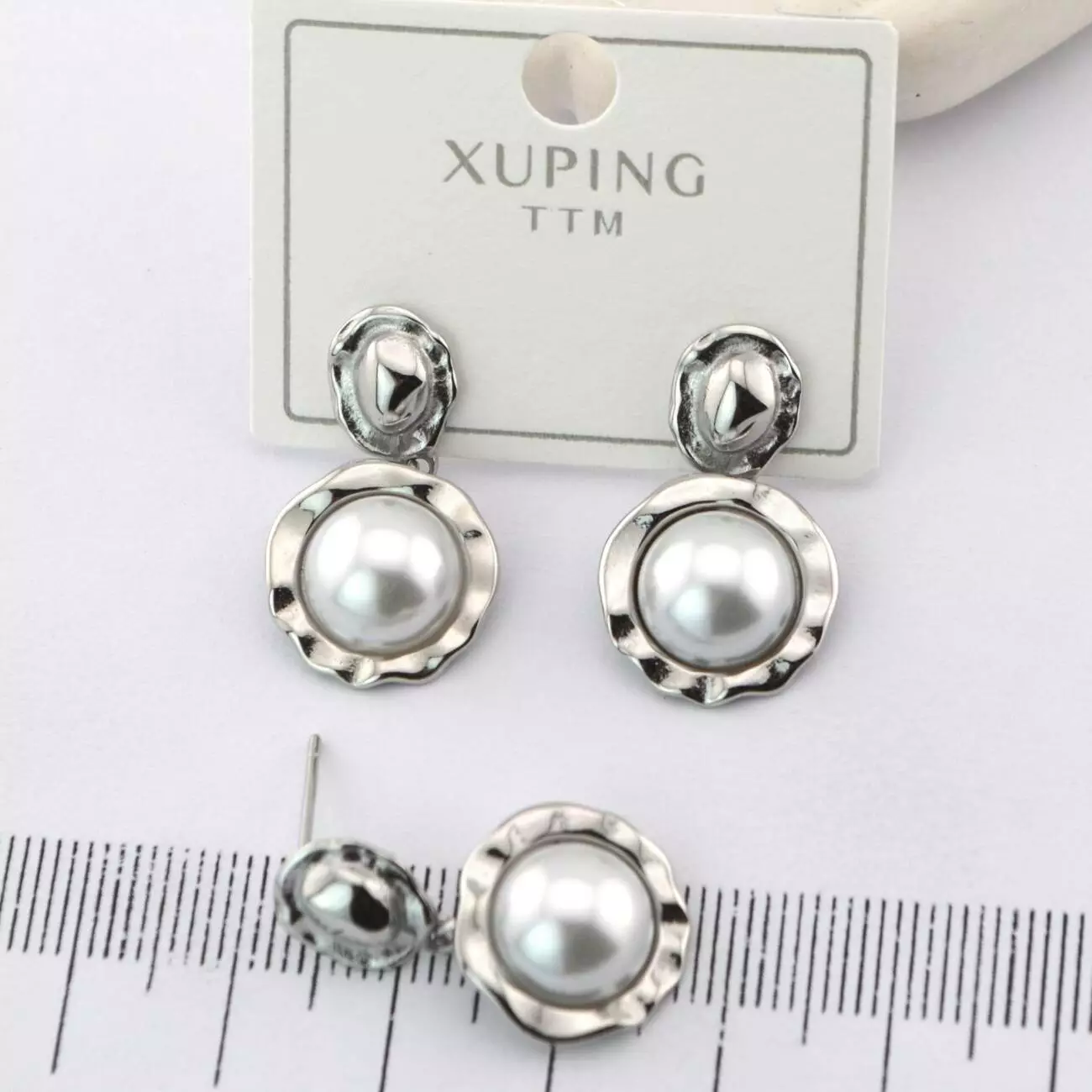 Сережки Xuping TTM цвяшки (пусети) з перлиною з медичного золота родій (01913)