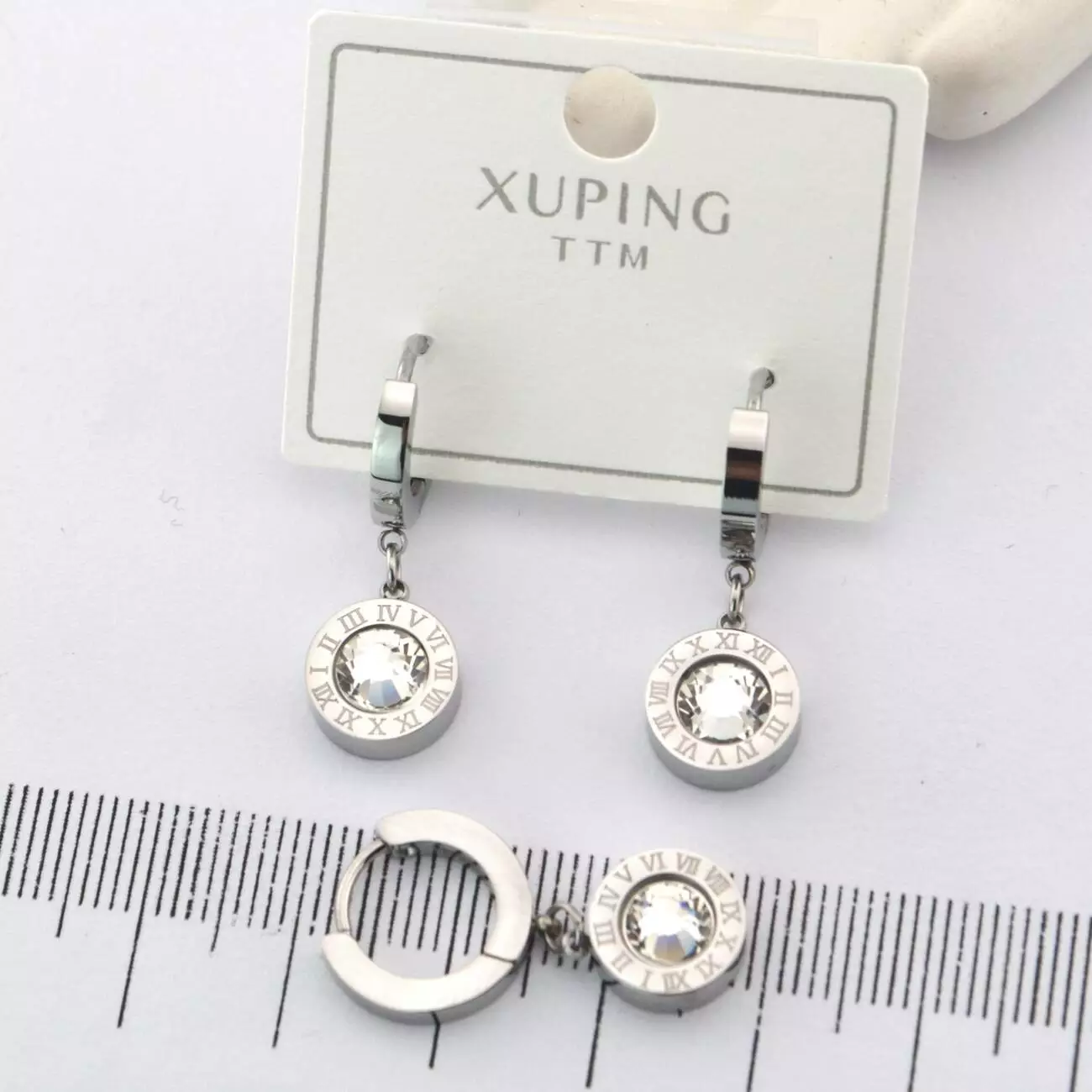 Сережки Xuping TTM з білим каменем з медичного золота родій (01751)