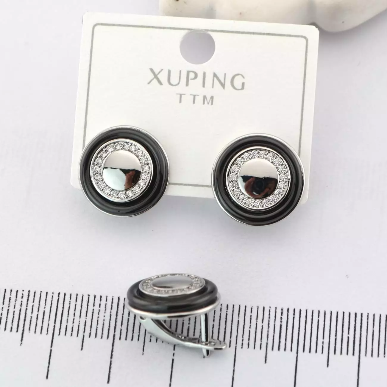 Сережки Xuping TTM з чорним ободком з медичного золота родій (02018)