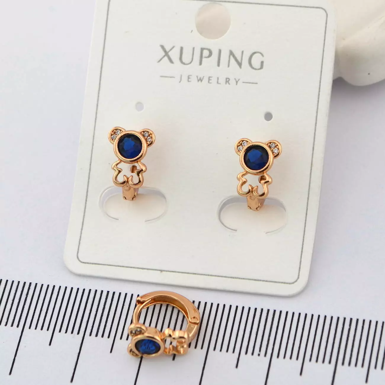 Сережки Xuping ведмедики з синім камінцем з медичного золота позолота 18К (00863)
