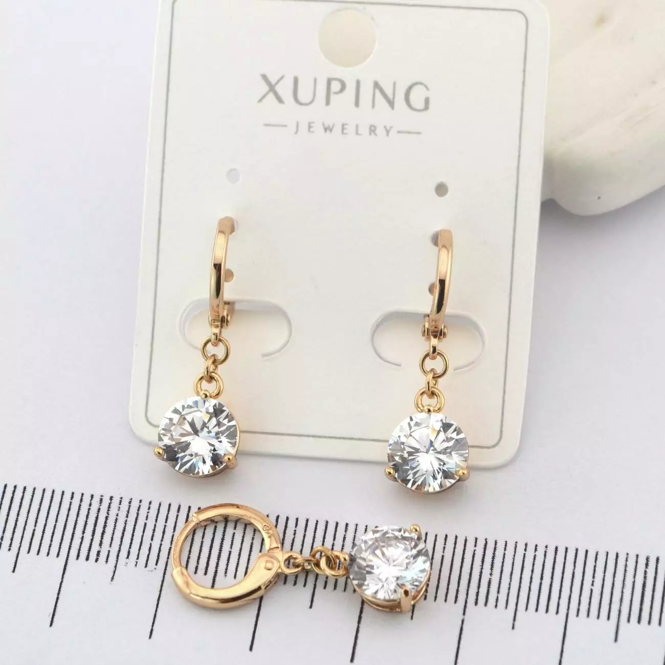 Сережки Xuping з білим каменем з медичного золота позолота 18К (01705)