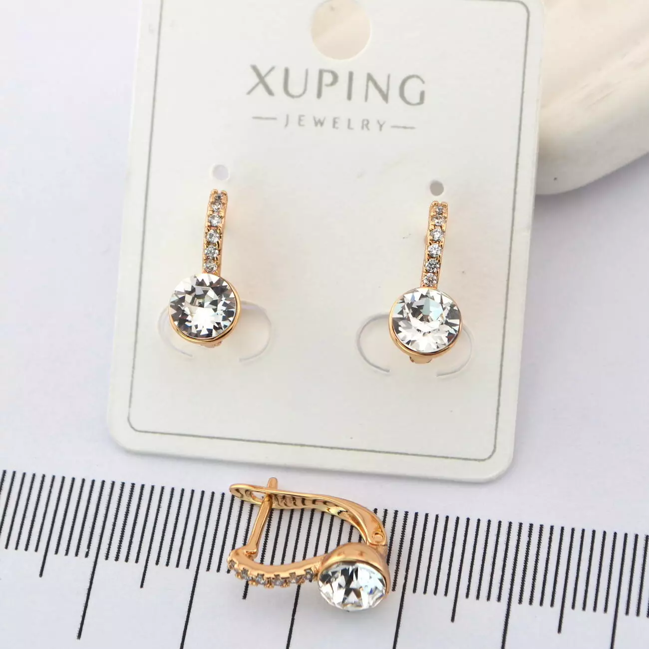 Сережки Xuping з білим каменем з медичного золота позолота 18К