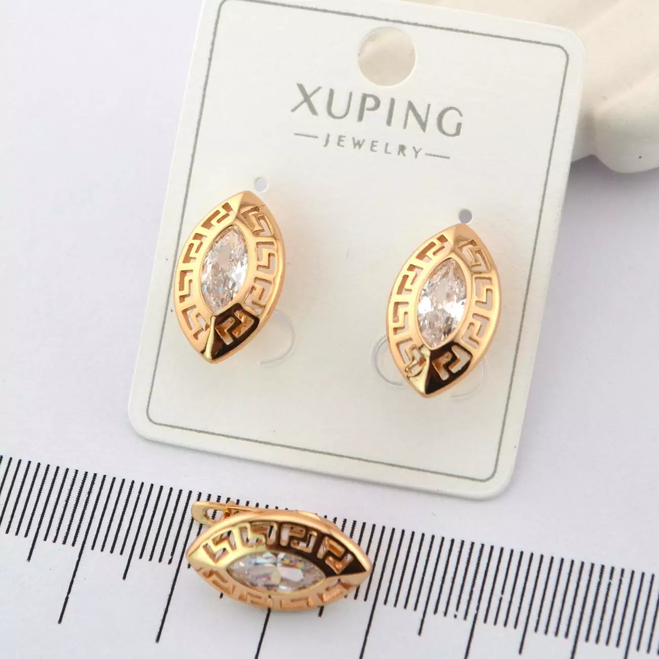 Сережки Xuping з білим каменем з медичного золота позолота 18К