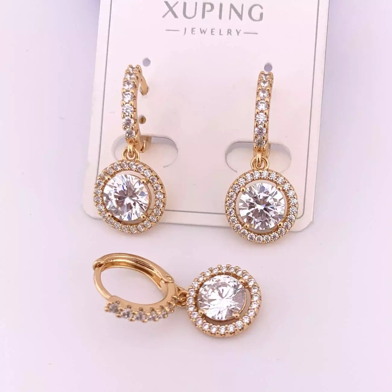 Сережки Xuping з білим каменем з медичного золота позолота 18К
