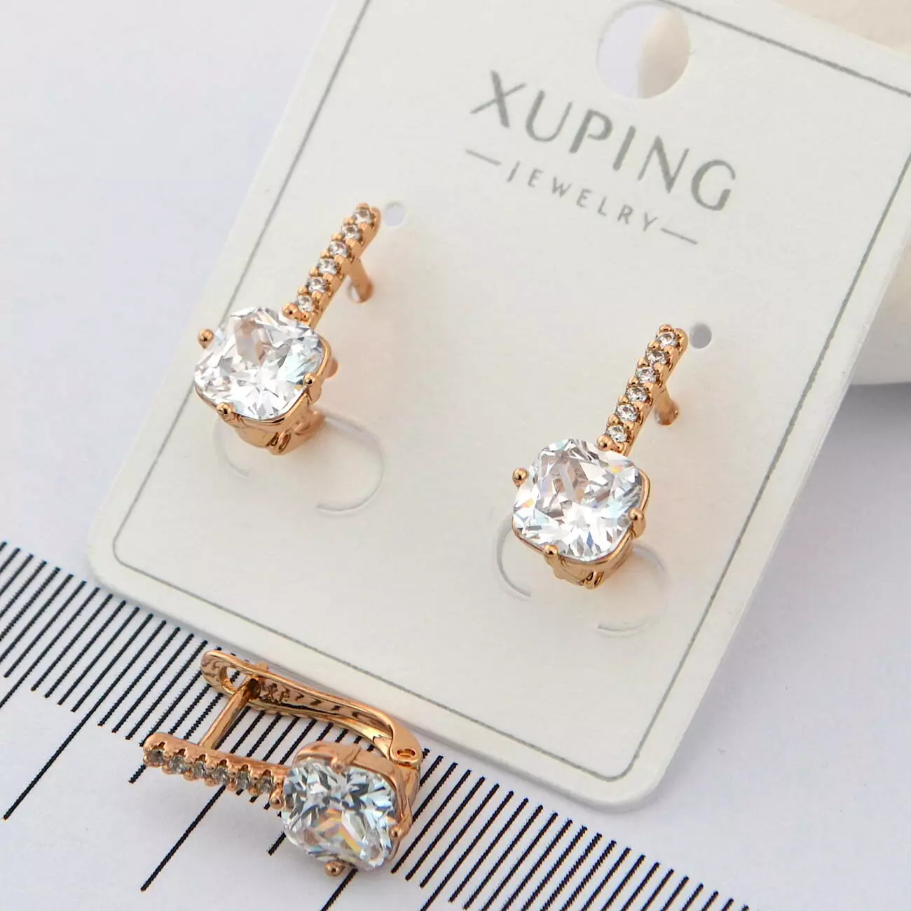 Сережки Xuping з білим каменем з медичного золота позолота 18К