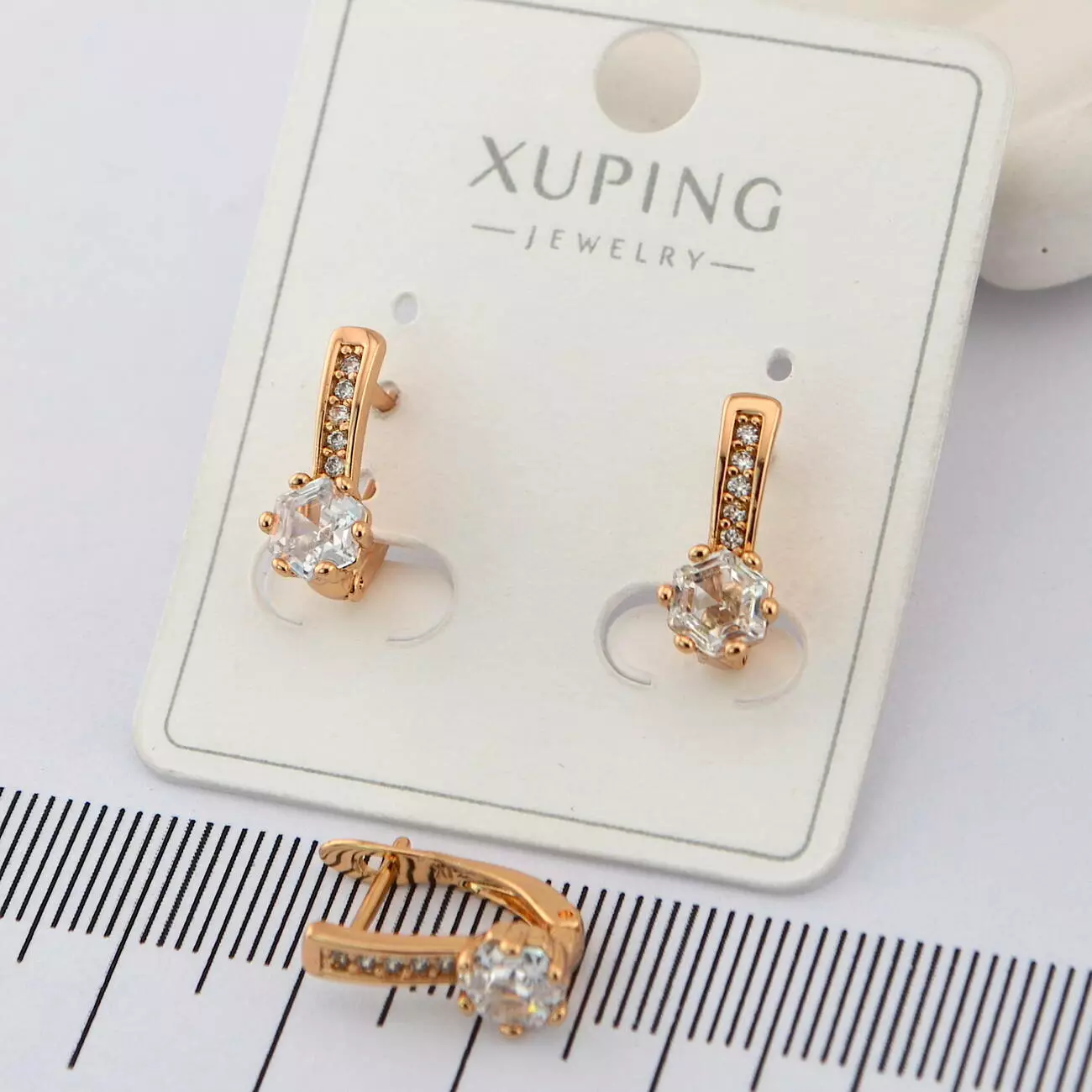 Сережки Xuping з білим каменем з медичного золота позолота 18К
