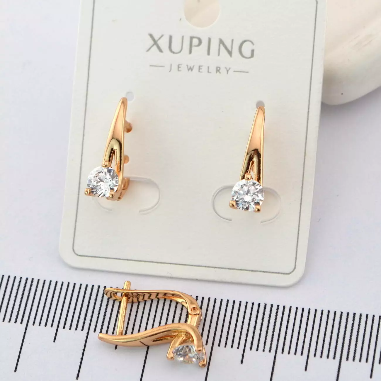 Сережки Xuping з білим каменем з медичного золота позолота 18К