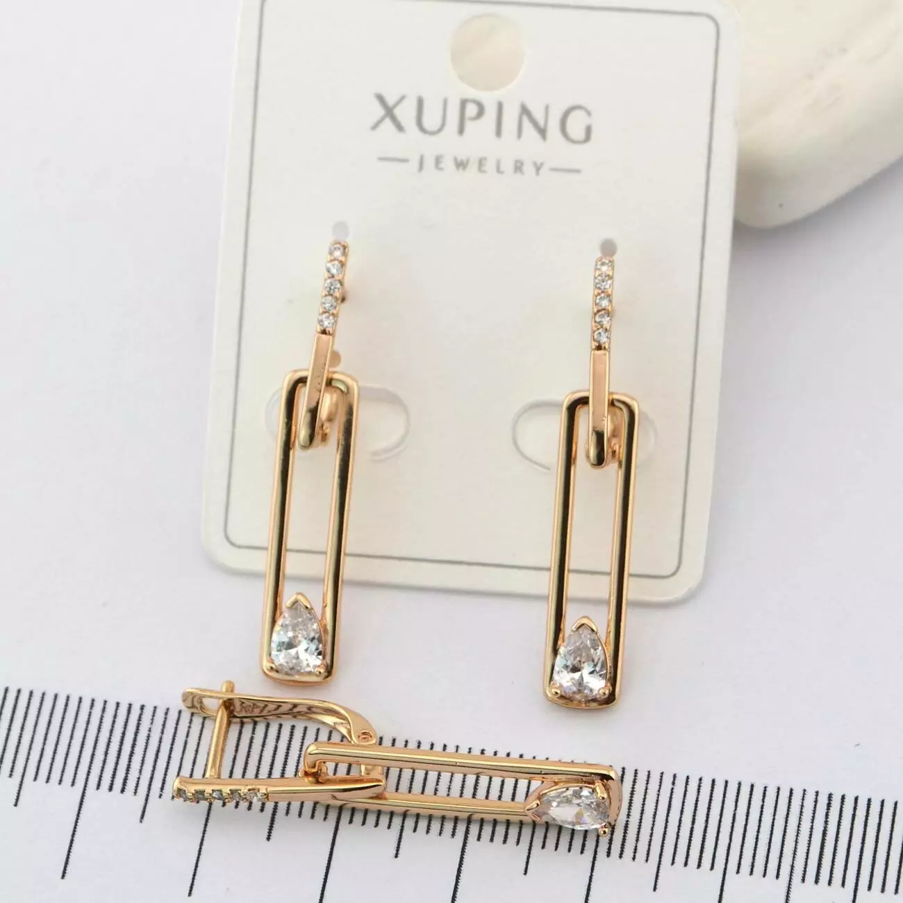 Сережки Xuping з білим каменем з медичного золота позолота 18К