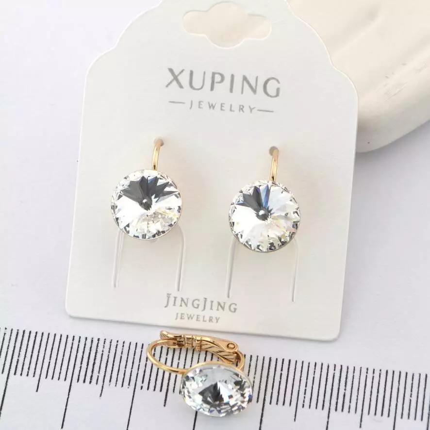 Сережки Xuping з білим камінцем з медичного золота позолота 18К (01617)