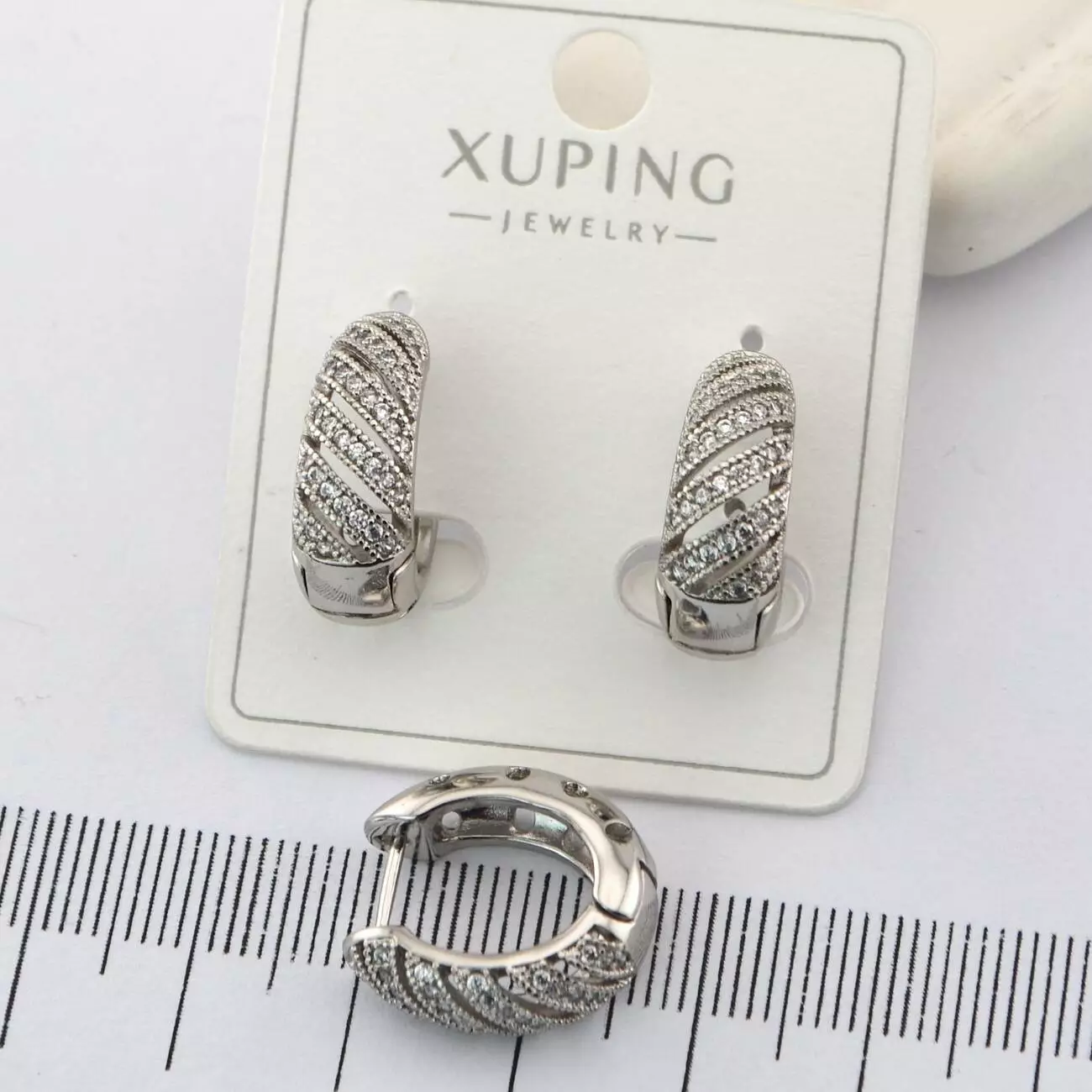 Сережки Xuping з білими каменями з медичного золота родій (01510)